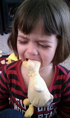And usually it does. These verbal ruts are usually followed by blood curdling scream screech. It’s horrible. The worst sound in the world. Words cannot describe this deafening sound that comes out of such a little person. She doesn’t always do this after a verbal rut, sometimes she does it for fun. Yes, fun. She thinks its funny. She will come up behind me in the kitchen and screatch for no reason what-so-ever except to make me jump and drop whatever it is I’m holding.