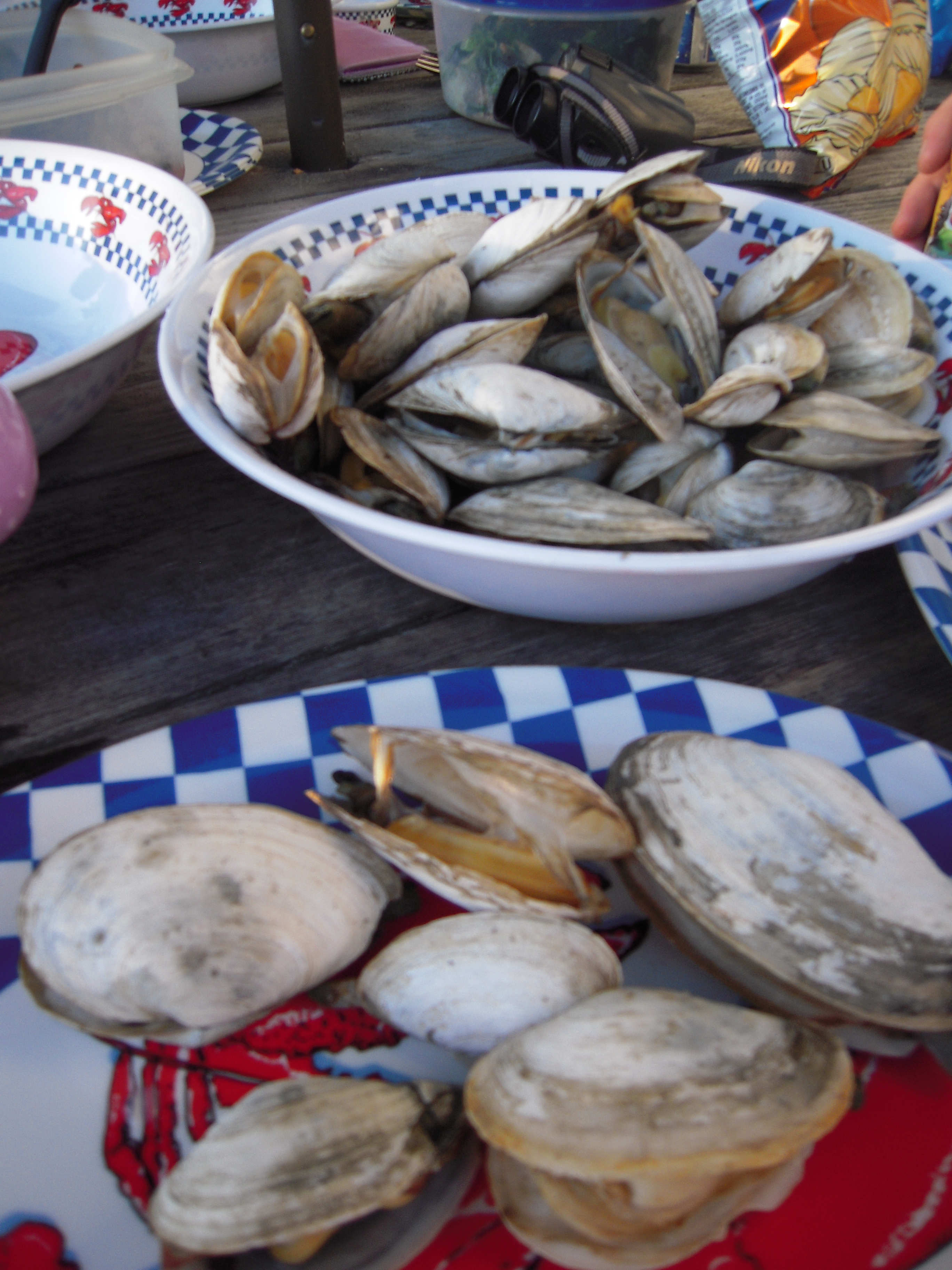 And we’re lucky enough to have a free place to stay benefit of staying with my parents that also comes with babysitters another benefit of my parents. Not that going out is top of our list while we’re there. I mean, who needs to go out when you can sit and have a beer with a view like that? Not to mention the ‘open air’ bathroom at the opposite end of the deck, aka: where no one can see you pee. On our visits BF is usually put to work clamming, lobstering yes on an actual boat, or weed wacking.